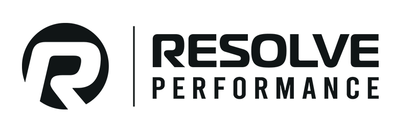 Resolve Performance logo design. A start-up in the sports coaching sector, targeting office-based males within corporate business. The client brief described a masculine and tough feel, with monochrome colour palette.