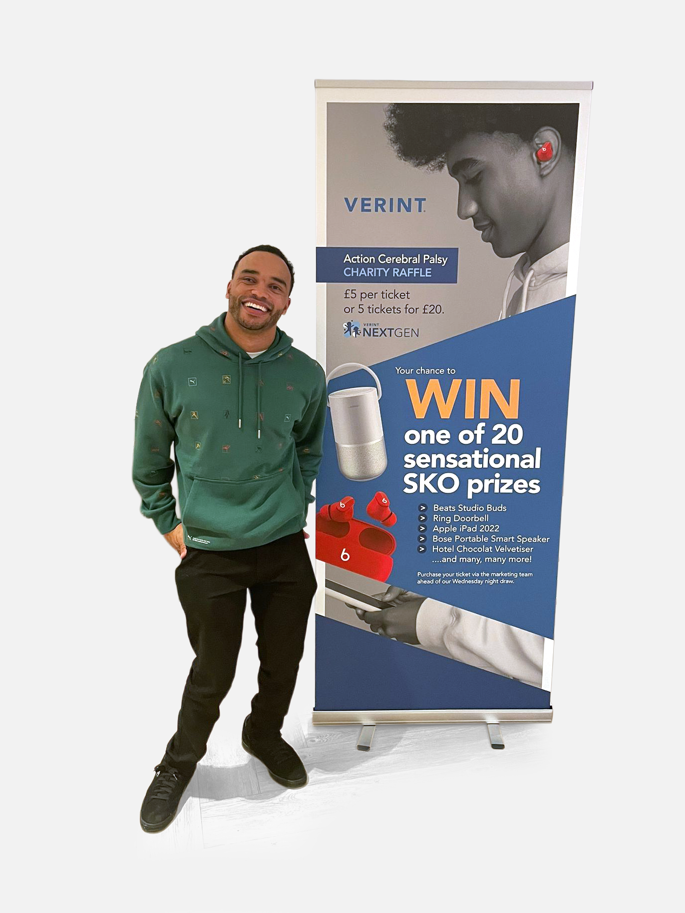 Roll up banner design supporting a Cerebral Palsy charity raffle, with keynote speaker Nic Hamilton.