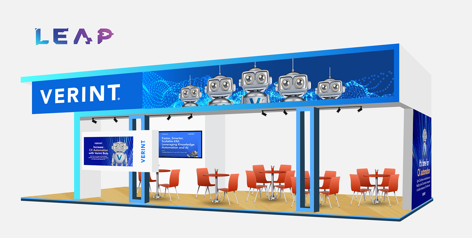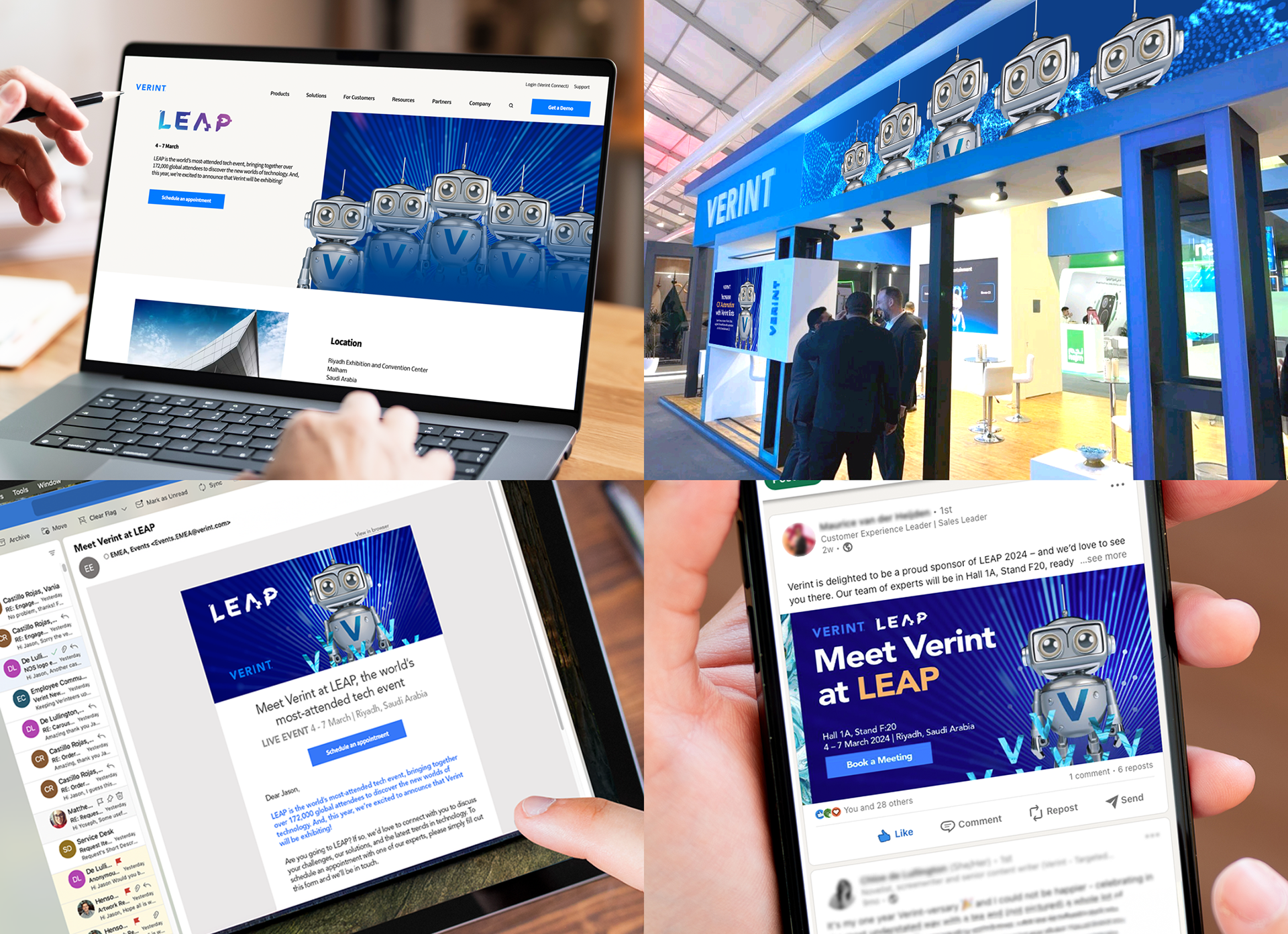 LEAP - the world’s most-attended tech event. Email, landing page, social and stand design. Campaign objectives were to support attendance, generate meetings and build awareness of Verint bots - Verint's core products. Each bot performs one specific task increasing CX automation.
